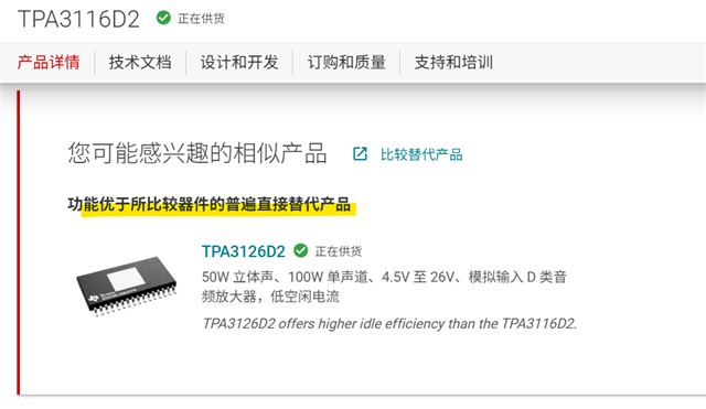 如果您蒸菜寻找TPA3116D2的替代产品,您也可以评估TPA3116D2产品页面推荐的产品,www.ti.com.cn/.../TPA3116D2