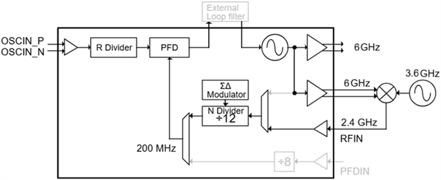 In the loopback mode ,i use a DDS as a external fractional-N divider,and i changed the frequency to 6005.999MHz,or other frequency near 6GHz,no more than ±50MHz,but the frequency did not change,still locked to 6GHz,