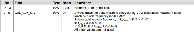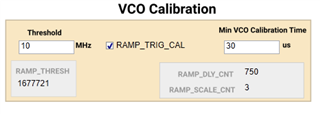 通过控制vco校准的延迟计数来控制脉冲周期时间,现在的问题是,我通过TICO PRO软件配置生成的vco校准延时与实际测试得到的不合符。