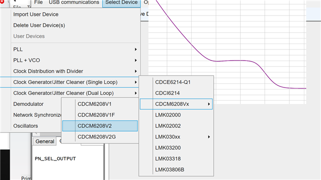 大家好啊:请教一下,使用EVM software v3.24 进行 phase noise  Tool 仿真异常,cdcm6208  一共8个通道,为什么这个选项里面只有01236这几个通道,我要用的通道都没有  ;我的配置 ,  等着写报告,需要仿真结果,急啊