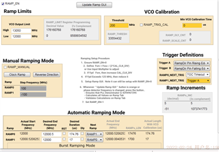 1. 每个斜坡周期的开始使用外部触发模式 Ramp0_NEXT_TRIG=TCO_Timeout; Ramp1_NEXT_TRIG=TrigergerA ,可以正常扫描了,谁知道斜坡初始的初始相位怎样保持一致?