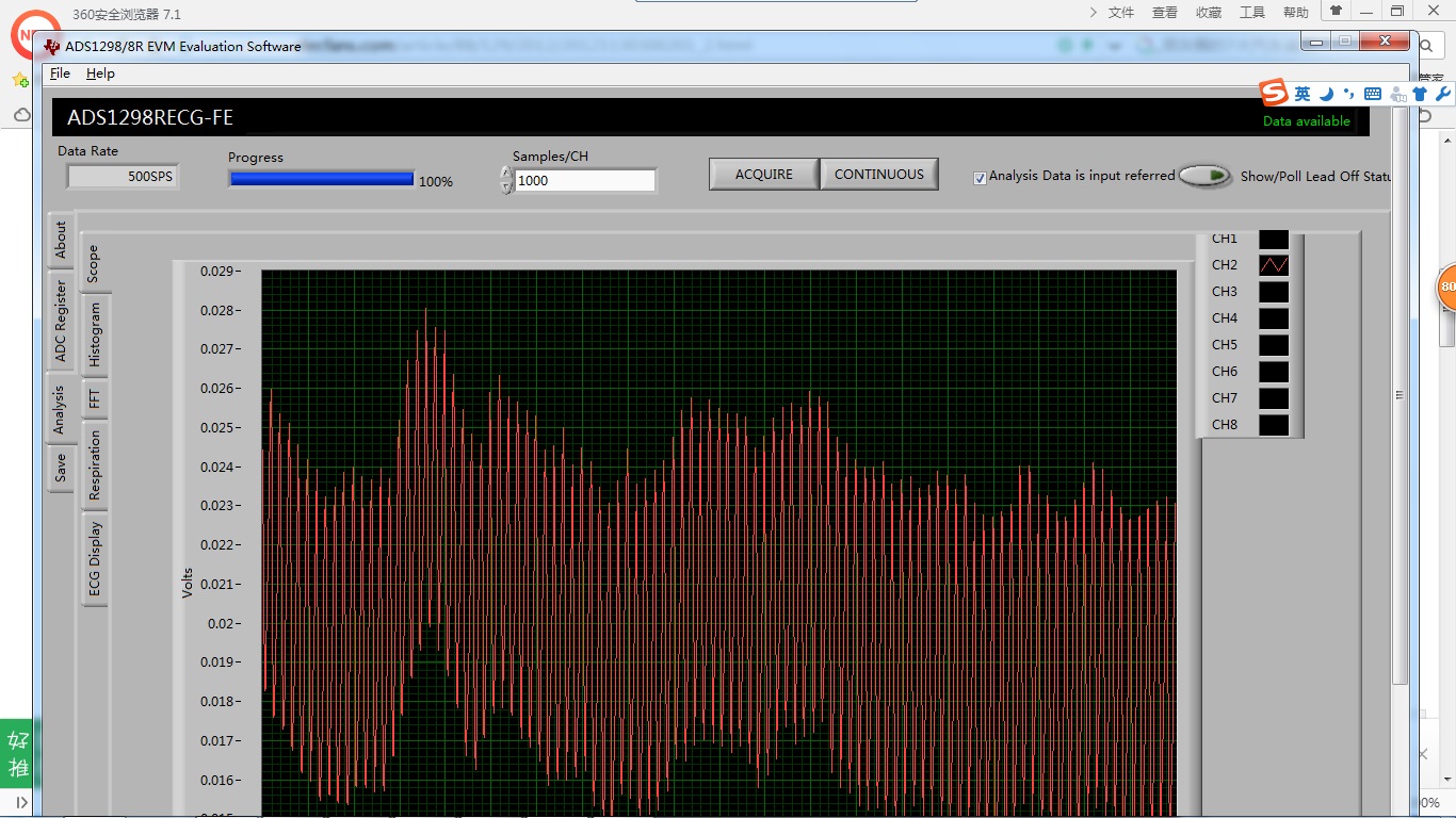 ADS129xECG-FE 直接测人体信号时,看不到心电信号