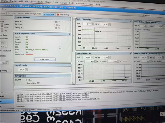 如题,我在使用TPS40428+CSD95378B输出0.9V,60A电流时,发现电流上有个543k的脉冲串。该部分电路使用的TSW14J59EVM评估板上的电源方案。