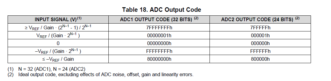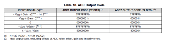 时ADC1的输出为7FFFFFFFh,这是不是表示采集正电压输入的最大值,如果是的话岂不意味着正采集最大才能采集2.5V/2147483647/2147483648范围内的电压,那这个似乎没有使用意义了啊.而负电压的采集说明同样也是让人费解,到底负采集的范围是多少呢。