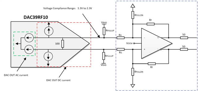 Hello, in my project, the output interface of the DAC39RF10 adopts a design that uses DC coupling and interfaces with a fully differential operational amplifier (FDA).The circuit design refers to the document in the link below.《DAC38RF8x+LMH5401_interface》