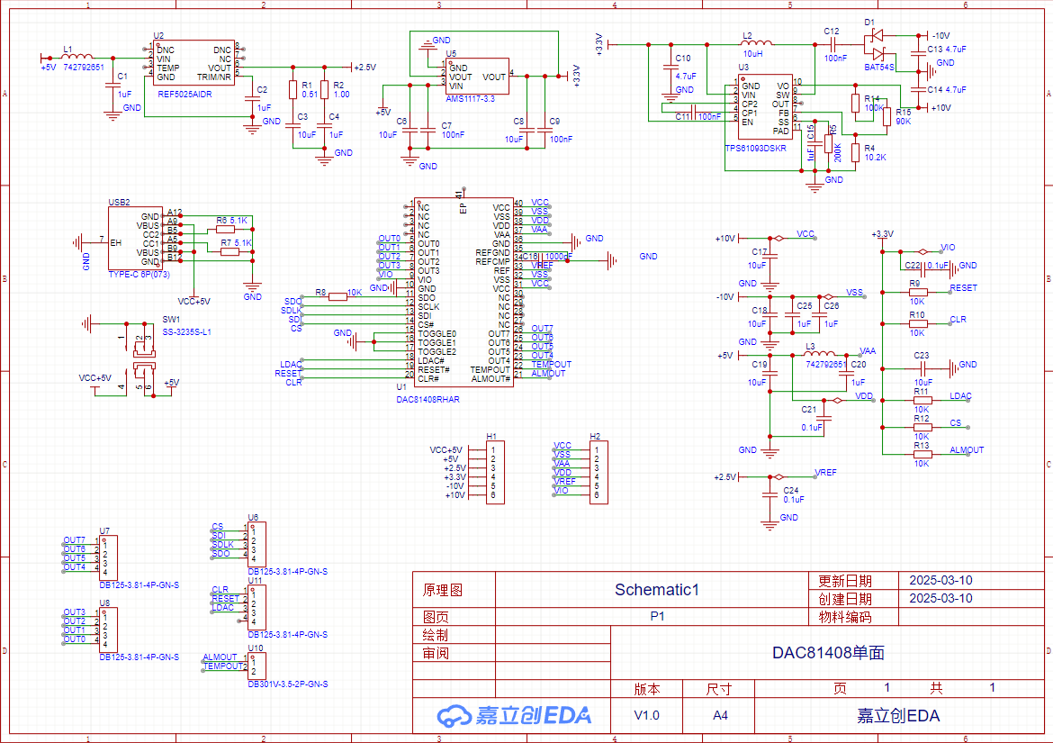 芯片上电后对我输入的信号没有反应,供电引脚供电正常,vio3.3v,vref2.5v,vcc10v,vss-10v, vddvaa为5v,然后按照文档时序设计输入信号输入后没有反应,并且测到TEMPOUT引脚输出为5v,但是按照说明文档里不应该为5v,这是哪里出了问题,下图是我的设计原理图和我的输出时序图.