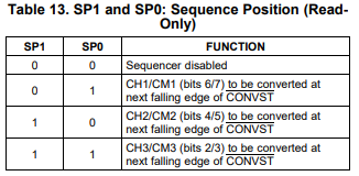在您的情况下,如果在您图片所示内容之前的帧中已配置过序列器,那么SPx位读回值不应为00。
