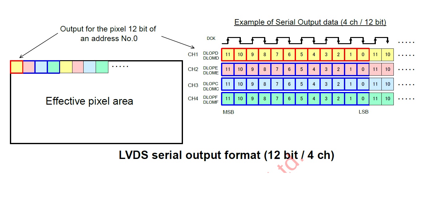MSB send frist,12 bit,下图是LVDS的时序: