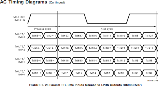 可以看到DS90CD288是将4对LVDS+1对CLOCK转化为28bit Data.
