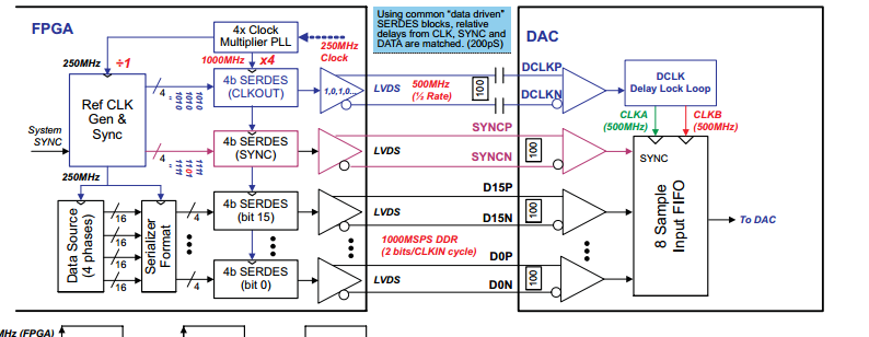 如图,是不是可以理解成因为数据是在每个LVDS通道上串行进入DA,所以1000MSPS这里等于1000MBPS?