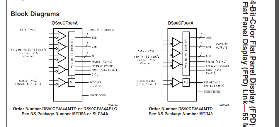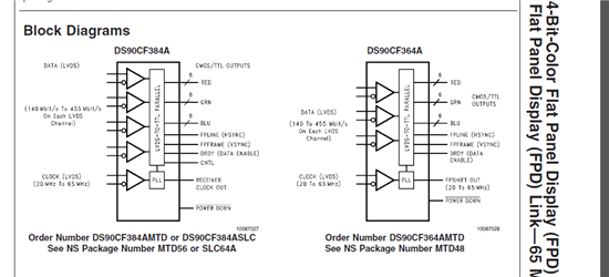 再看手册时发现你们对于18位LVDS传输方案是用另一款叫DS90CF364A的芯片。而DS90CF384A却没说能不能进行18位LVDS数据传输。