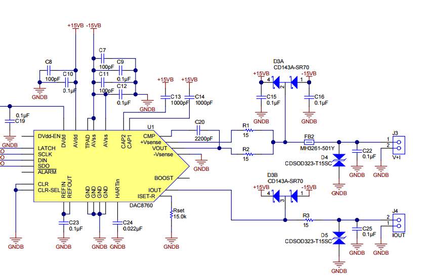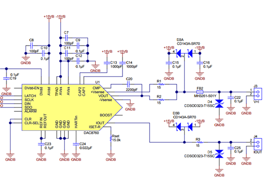 1、DAC8760的Iout和Vout都有两个TVS防护,这两个各是什么作用?