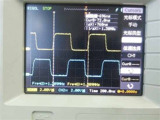 SCLK和FCLK都正常,如下图,黄色为FCLK,蓝色为SCLK: