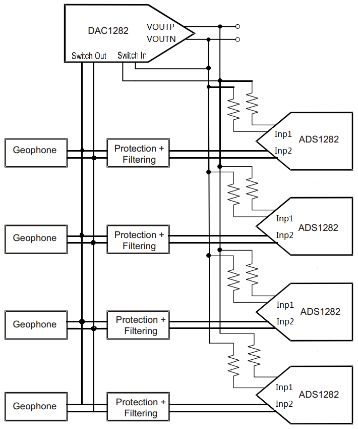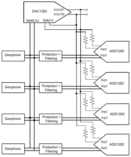 2、利用DAC1282对采集系统做校准和测试时,能否按照以下结构连接各个芯片?