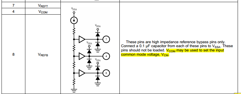 您是想使用单端输入吗?那么您的输入信号范围为多少?Vcom是用来设置输入共模电压大小的。Weiyu Chen 说:您好,请问怎么看出是这个范围