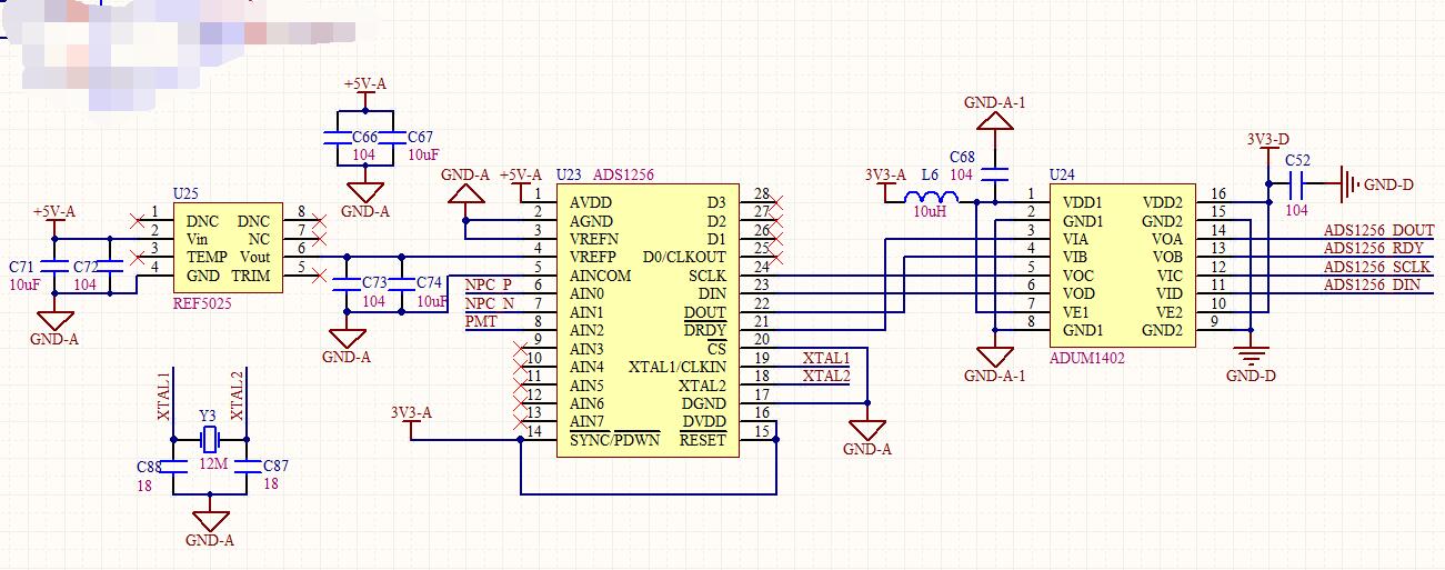 ads1256用ADUM1402ARW隔离,单片机为STM32