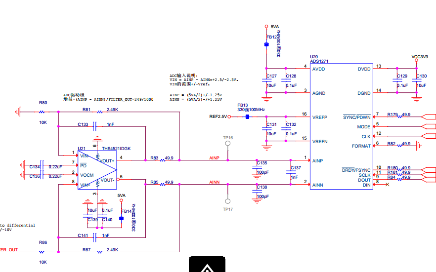 4路共用一个参考电压源和一个模拟5V,图中所有的磁珠现在都是0欧姆
