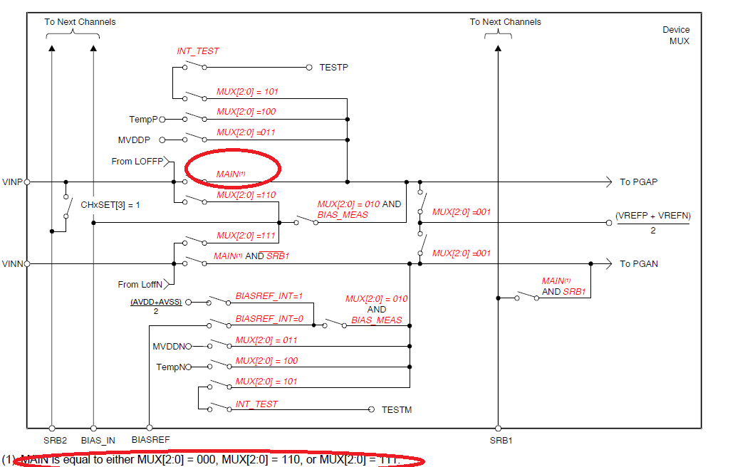 大家好,关于ADS1299输入通道问题:当把ADS1299通道配置为正常输入时(MUX = 000),对应的PGA接收的信号是采集的原始信号。