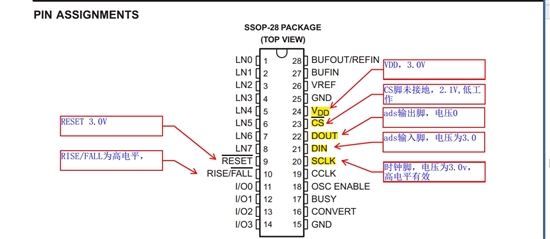 第一张图片为ads7871端spi四线的波形,第二张图片为测量时各引脚的电压。因为DOUT未加上拉,而是在MTK代码里内部加的上位,不能确定DOUT脚能有效输出。所以就用控制VREF来测试spi通讯。发送指令后,VREF电压还是为低。SCLK为800Hz。