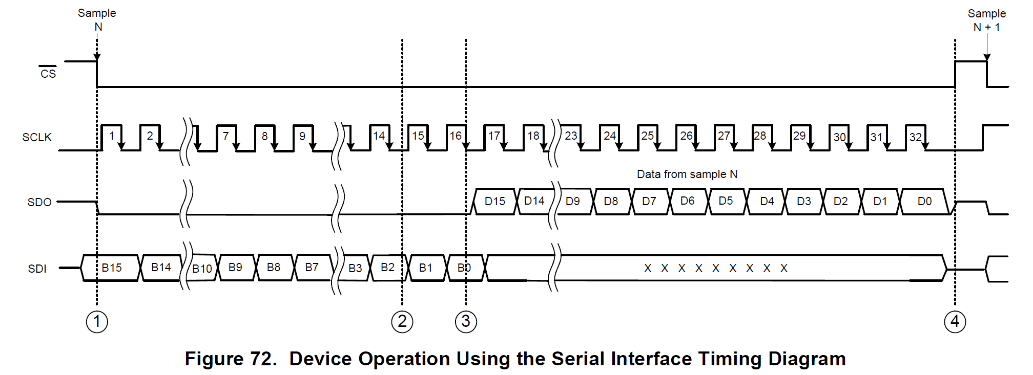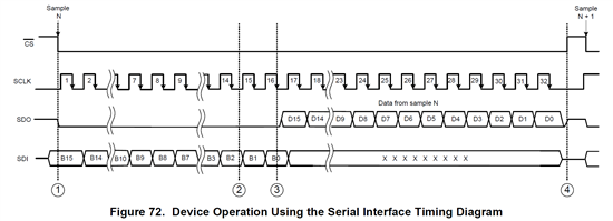 触发一次CS下降沿,每次只能传输1个通道的数据,这个数据是上次控制字对应的采集通道的数据。
