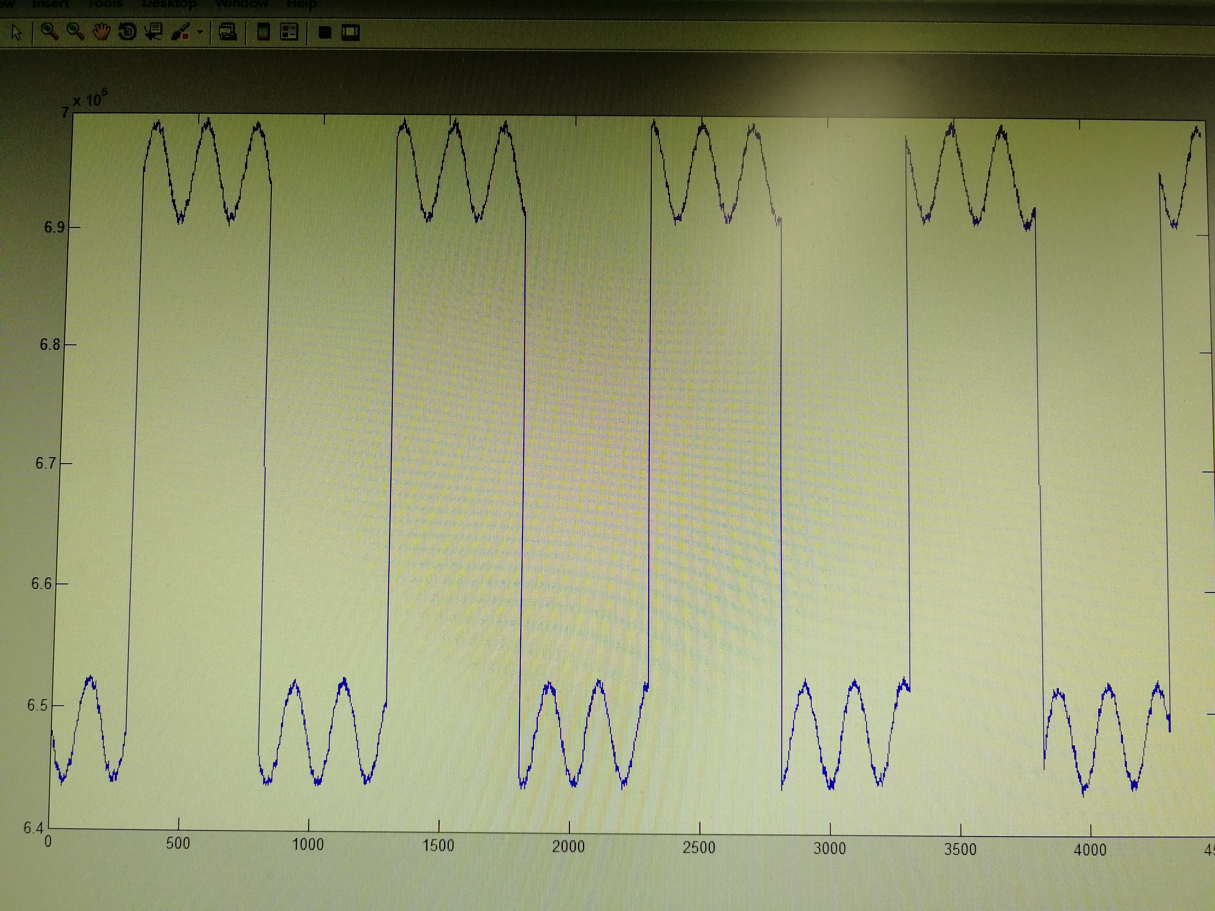 这是输入正弦信号的图形,都是叠加在矩形波上,模拟前端进入adc之前信号没问题,不知道是什么原因后有这个矩形波出来 ,求大神解答!!!!数据是mcu通过串口降采样为1k后用串口抓出来的 串口波特率460800,降采样1k的数据到串口的数据是没有丢失的