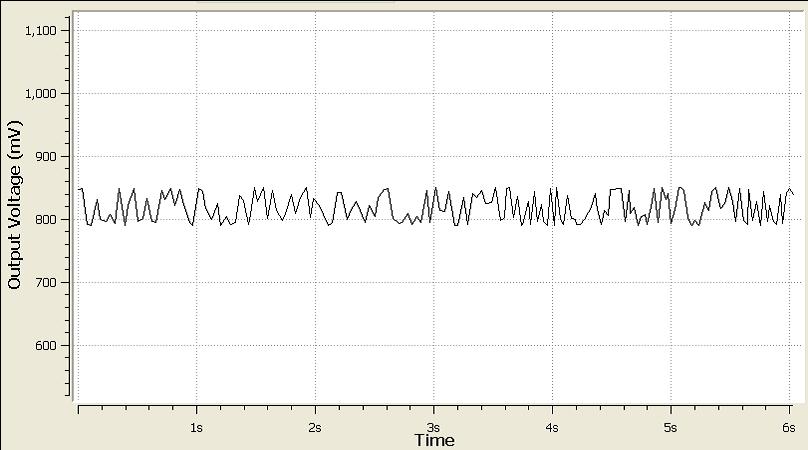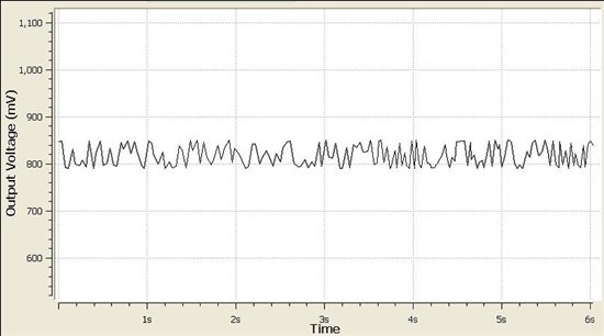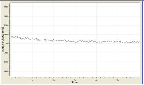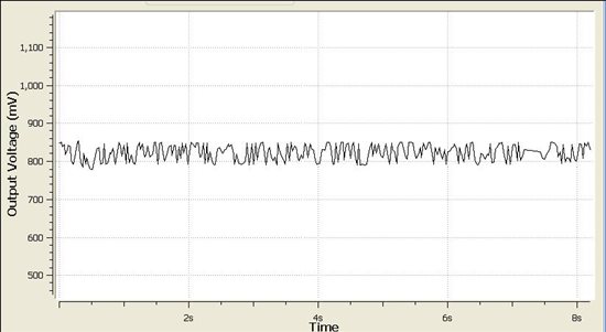 该测试是检测传感器功能是否正常,下图-3 与图-4 分别表示启用GUI 中Sensor Check 功能前后传感器输出电压的情况。下图-3 是传感器正常应用中的输出情况,可见其输出信号相对平滑,注此时未启用Sensor Check 功能。