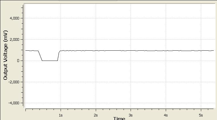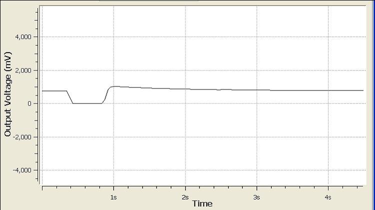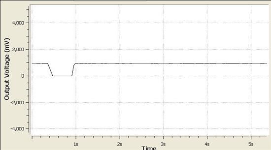 传感器电极短路是常见的一类安装错误,此时会对应电极短路的故障状态。图-5 是传感器电极短路后启用故障检测后的输出情况,和正常应用时的输出非常类似。此时的输出电压同样经历跌落、维持、回升三个阶段,只是回升后的电压没有过冲现象存在。