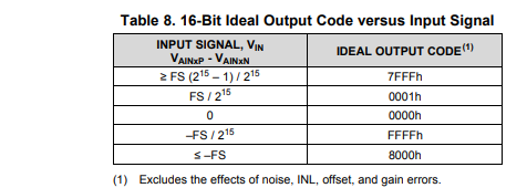 大家好,我在使用ads131a04过程中出现一个问题,我是使用外部参考电压模式,参考电压为2.5V,ADC前端输入差分信号,AINP和AINN输入信号峰峰值为700mVpp,ADC采用16位数据长度,所以理论采集数据最大输出为32768/2.5*0.7=9175,但是实际采集得到的最大数据为16832,约为理论的1.8倍,adc时钟为16.384M,a_sys_cfg=x"0b60", d_sys_cfg=x"0c3c",clk1_cfg=x"0d02",clk2_cfg=x"0e2b",adc_gain=1,各种命令配置及回应都正常,只是采集数据出现上述情况,请问这个有可能是什么引起的?