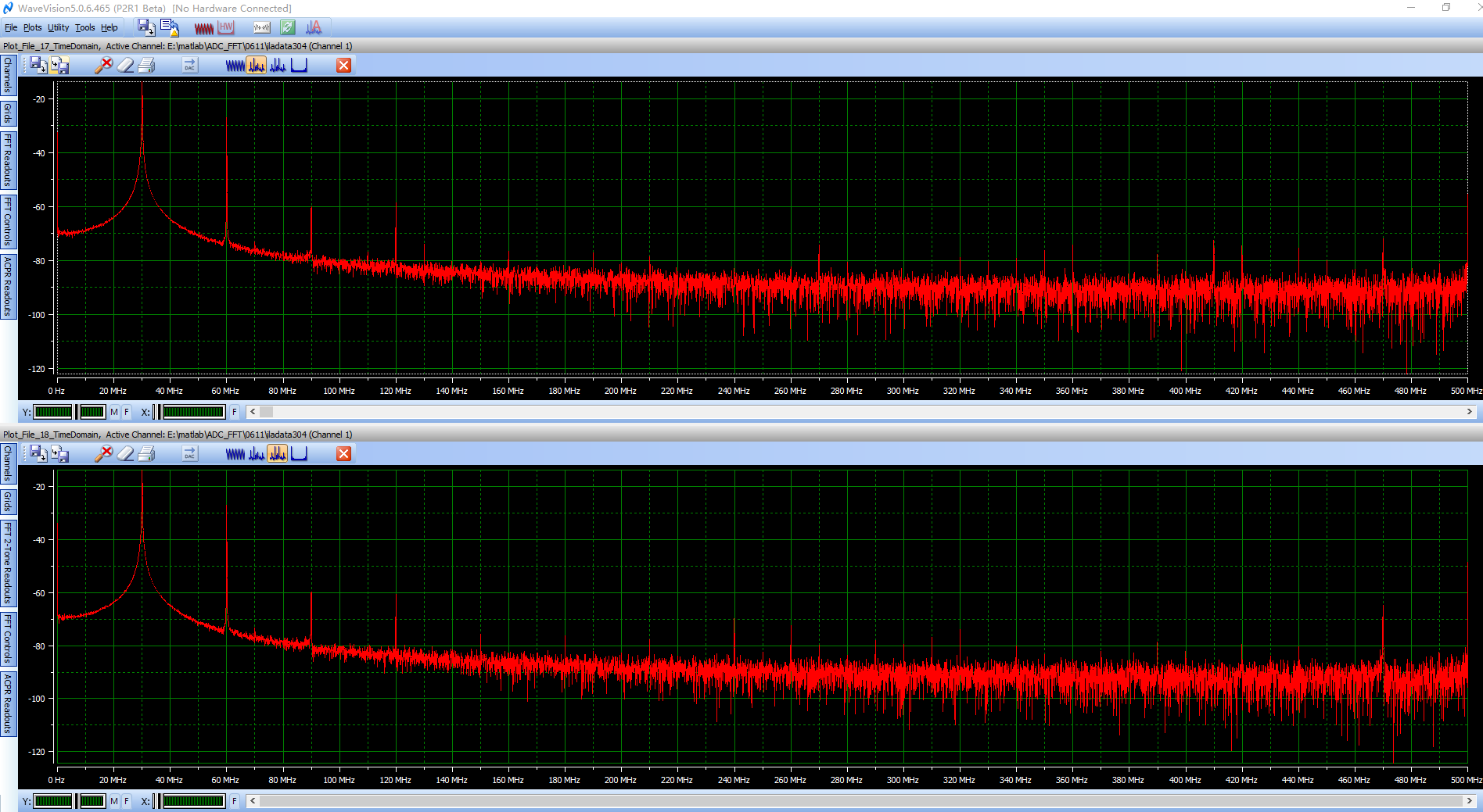 问题:用FPGA采集的原始数据导入waveVision和matlab中分析,发现2、3次谐波幅度很大,之比有用信号低十几dB,造成SFDR很差。随着输入频率变化,输出固定位输入信号的2、3次谐波, 已排除电源、时钟、输入信号原因。请教TI员工,有无解决问题的建议。
