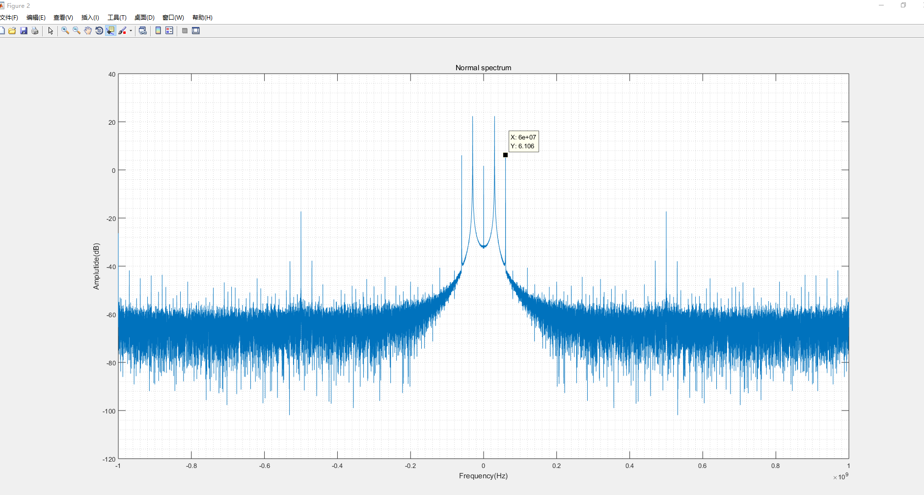 使用ADC12D1000,2G采样率,输入信号30MHz。采用IO口并行配置,输入端口加30M带通,排除输入信号谐波影响。采样率外部信号源中只供,频率、电源正常。
