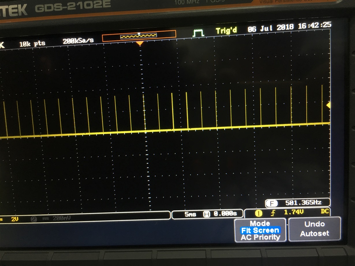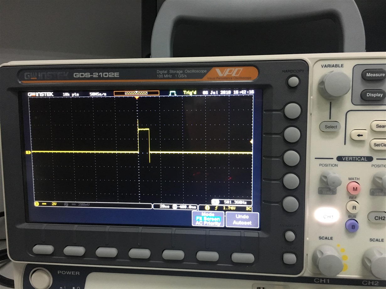 示波器得到的结果如下,频率应该和转换速率对应为500是正确的。而且我也用同样的探头检测了START引脚,得到的是高电平,说明示波器探头没有反相,不知道是什么原因