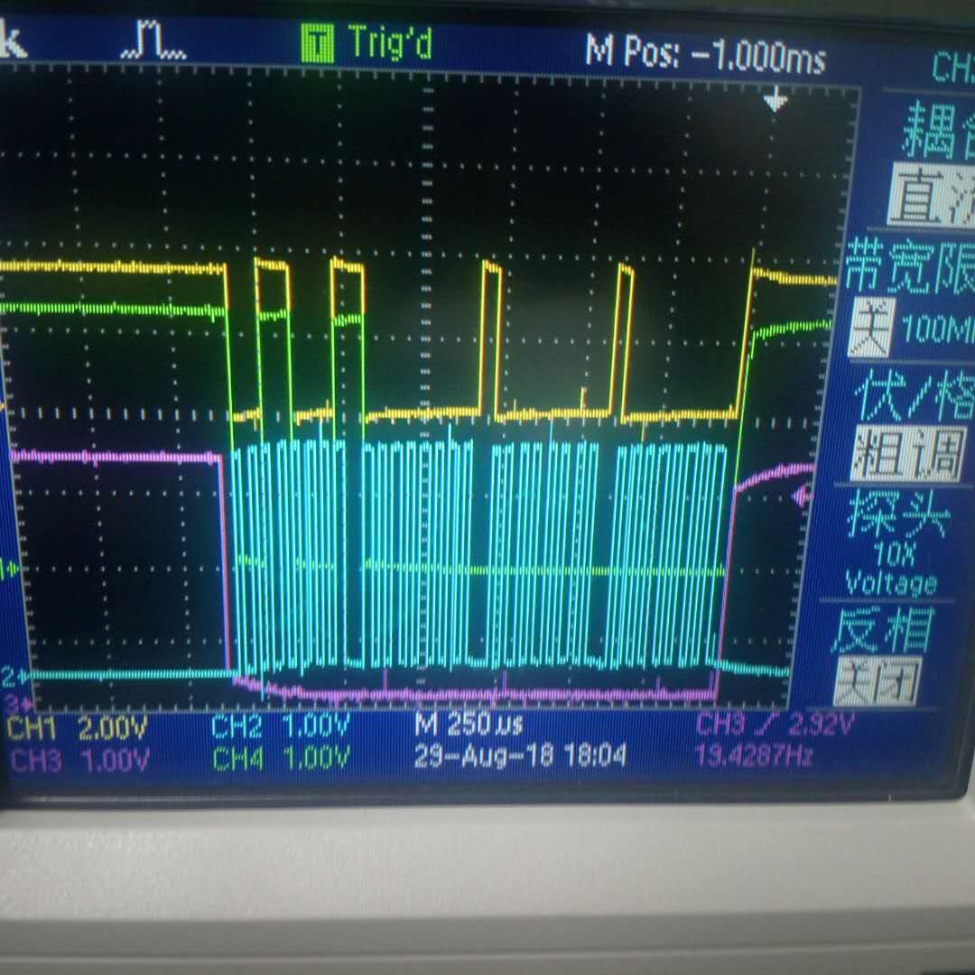 下面是读取通道波形:黄色是mcu 发给你ads131a02 的数据线;