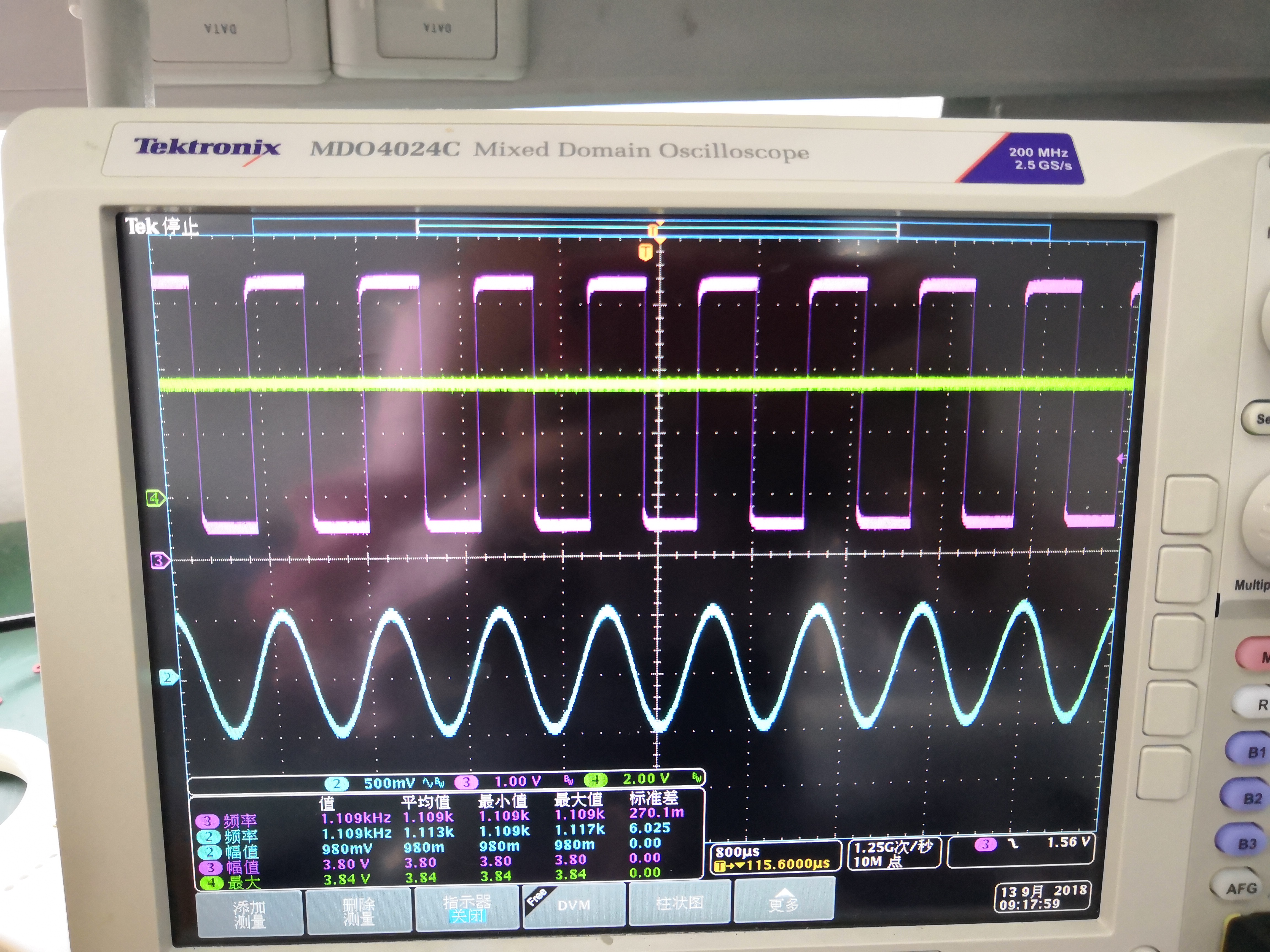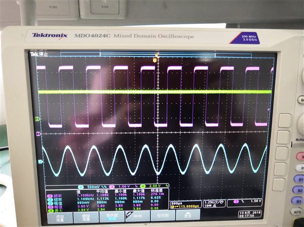 其中通道2为输入信号,通道3为中心检测信号,通道4为输出信号