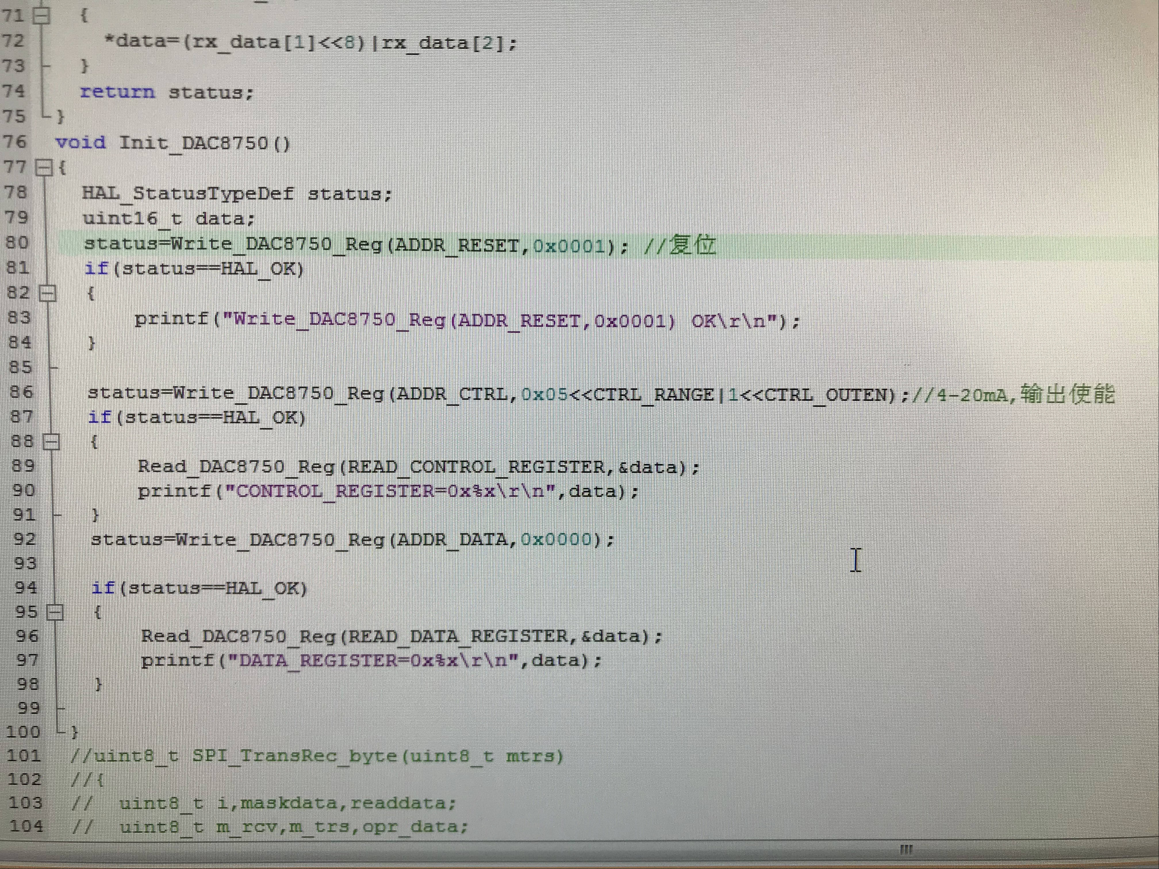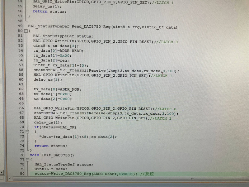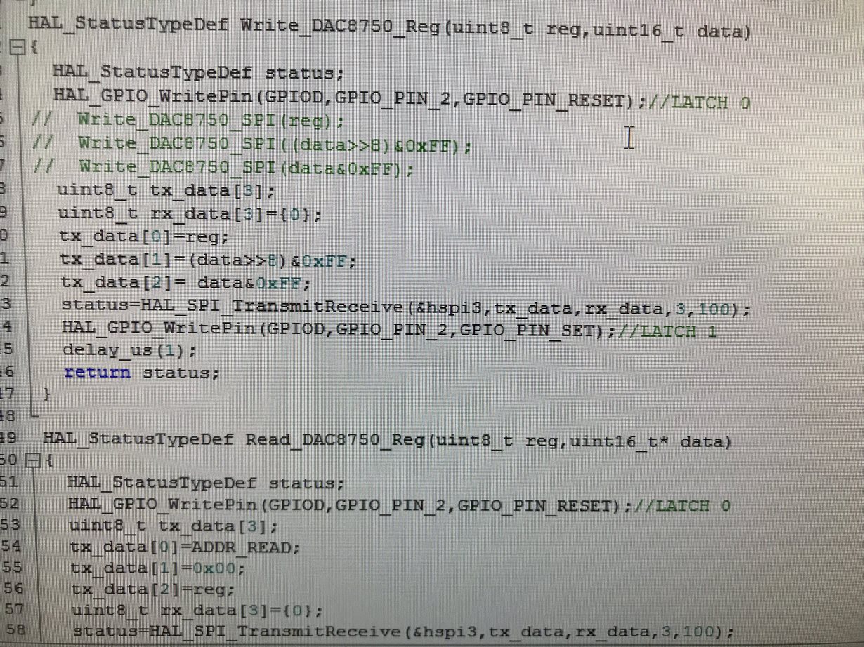 写入和读取DAC8750的数据寄存器和控制寄存器都没什么问题,但是电流输出一直都是0.624mA,并且有开路报警。问题出在了哪里?