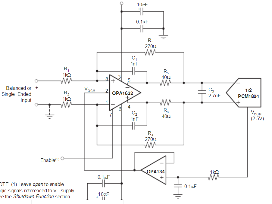 手册是支持单端输入的,我想知道运放的V-端是否可以接地,Vocm脚当前接的基准为2.5V,下图为运放手册