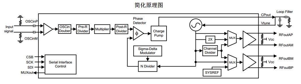 上图为数据手册上的简化原理图,只有RFoutA端口上有个2X,这表明:只有A端口可以输出到19GHz?