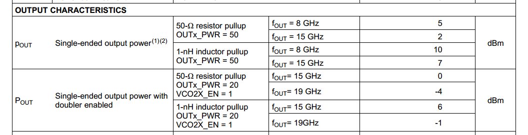 表格里的VCO2X_EN=1,而OUTxPWR = 20, 这个‘OUTx’表明2个端口都可以输出19GHz?