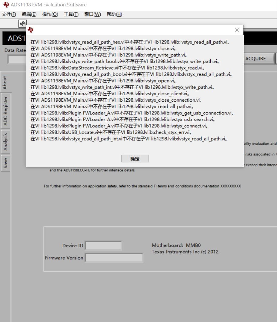 从TI官网上下载的ADS1198 EVM Evaluation Software打开后有许多报错,无法正常使用,请问有同学遇到过这种情况吗,应该如何解决呢?谢谢。