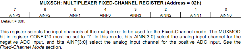 如要配置 AIN3作为差分正,AIN4作为差分负。整个配置字节就是:00110100 也就是 0x34 ,那么单端呢,如果想配置AIN0作为单端输入,寄存器配置成0X00(默认配置),配置AIN1作为单端输入,寄存器配置成0X11,是这样吗?