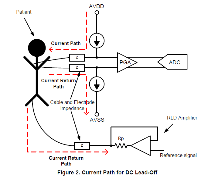 我不认同你的说法,因为激励信号(电流)必须借助人体作为回流途径,才能起作用,见下图,以上下拉电阻方法为例,即如果电极不连接人体,相应的信号通道会被直接上拉至AVDD或者下拉至AVSS。