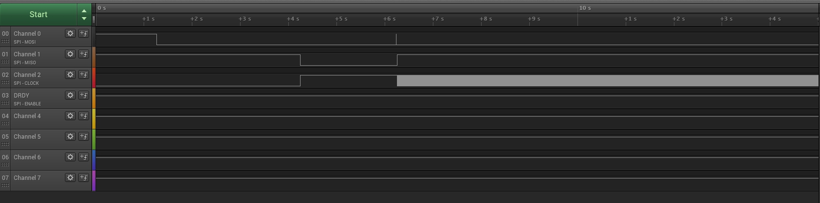 此圖為整體邏輯分析儀訊號圖,CH0為MOSI,CH1為MISO,CH2為CLOCK,CH3為DRDY,CS我讓他恆保持低態