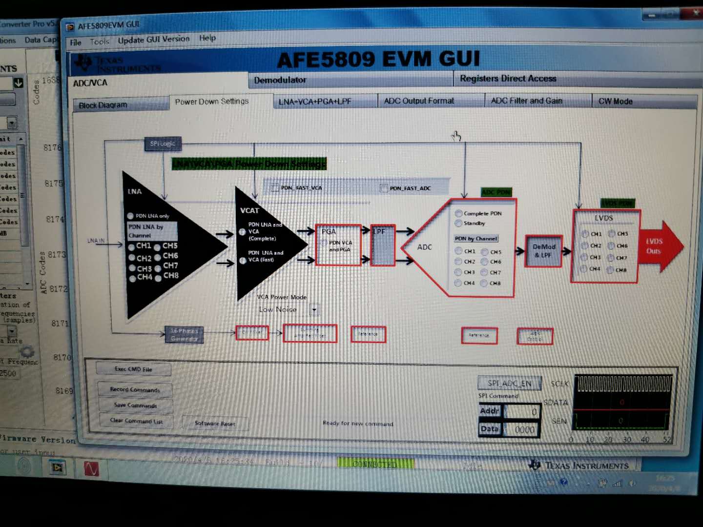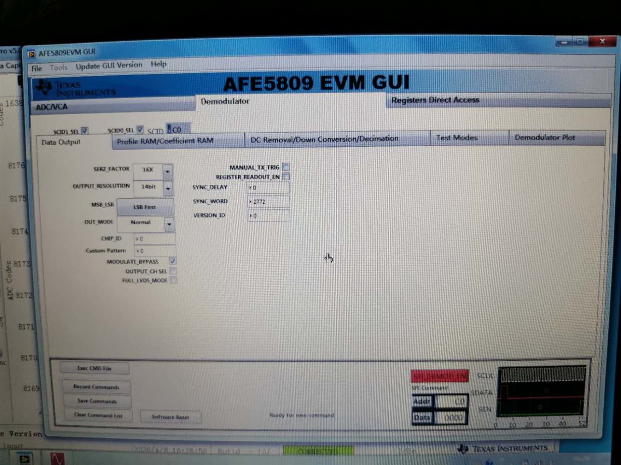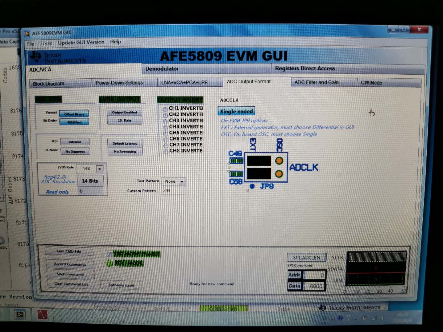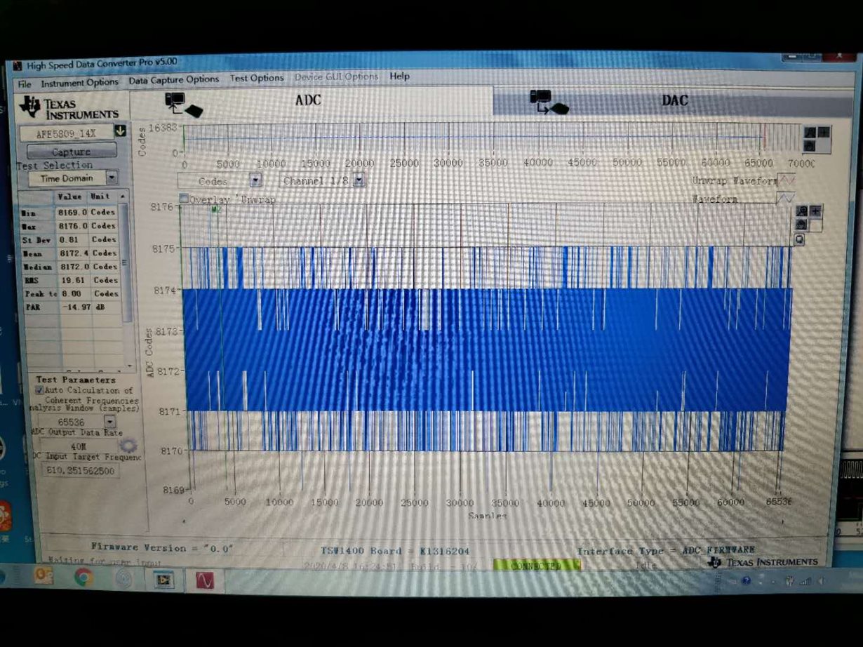 我现在要实现从信号发生器发出一个正弦波到AFE509EVM的信号输入通道,然后在TSW1400 GUI界面去进行捕捉,但是捕捉到的信息很奇怪,应该不是正常的