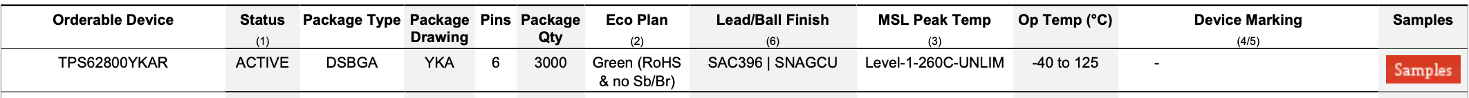 • TPS62808YKAR the silk screen printing of the incoming material is P, please help to check whether the picture is consistent with the specification.