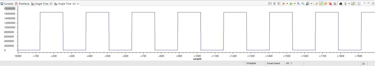 我想要透過CCS讀取外部訊號,我已成功讀取內部測試方波如下圖一,但是當我將暫存器改為讀取外部訊號80HZ SIN波,數據輸出圖如二,請問是什麼原因造成這個結果,我需要如何改進?