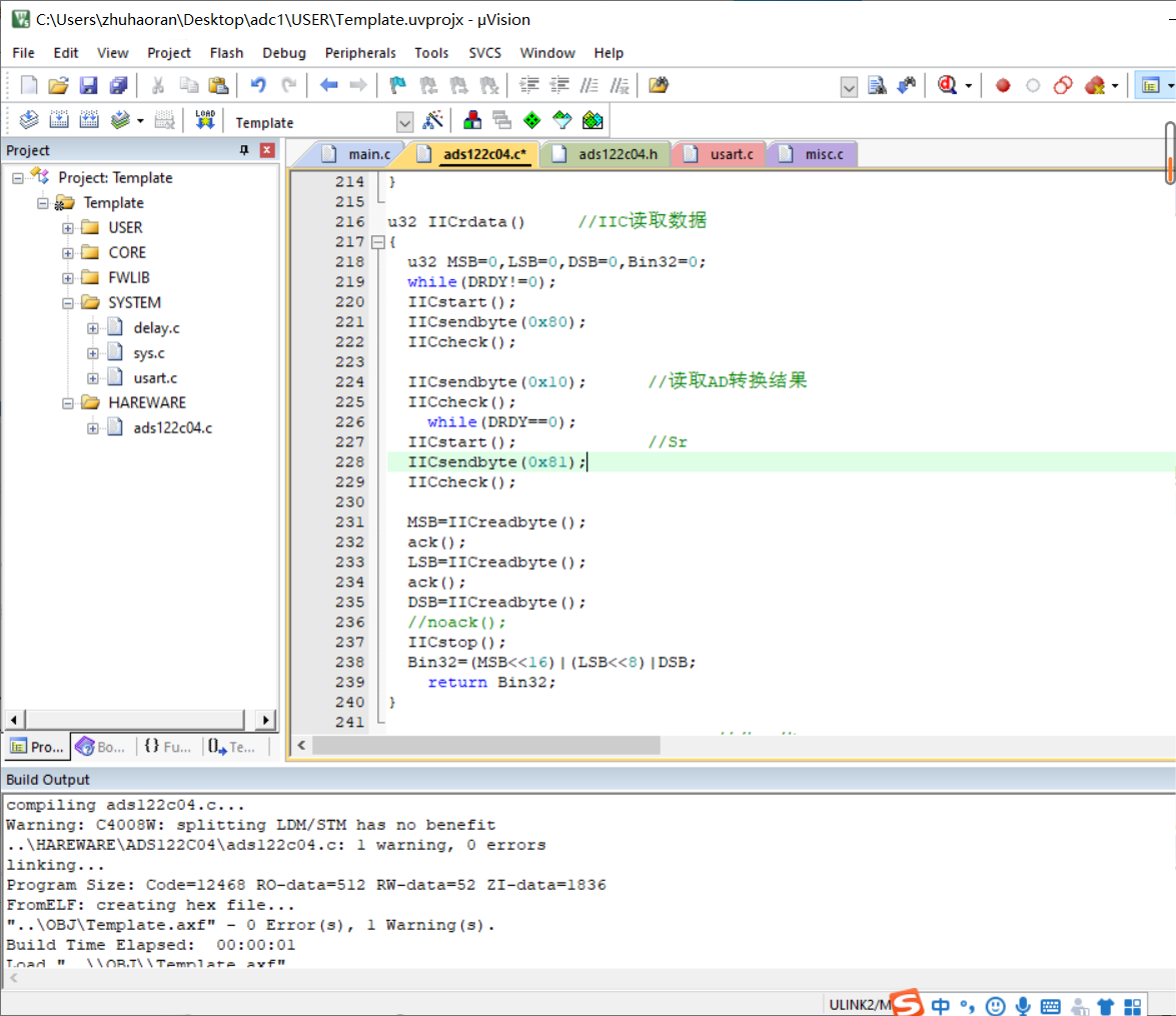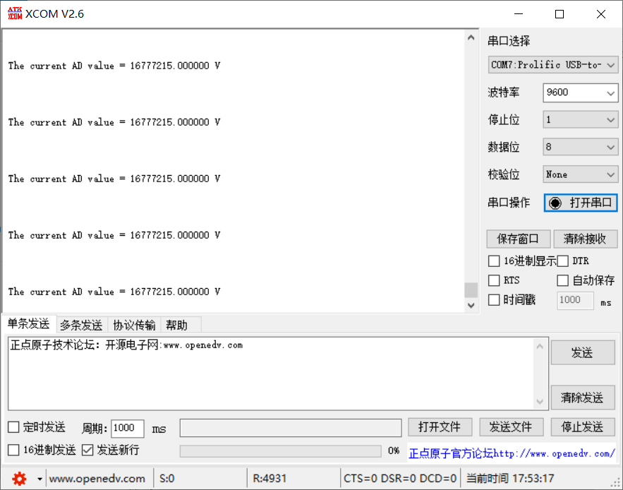 我把DRDY的判断给去了之后(while(DRDY!=0);这个判断)
