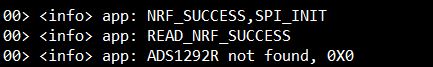 //SPI驱动程序实例ID,ID和外设编号对应,0:SPIM0 1:SPIM1 2:SPIM2 #define SPI_INSTANCE 0 //定义名称为spi的SPI驱动程序实例 static const nrf_drv_spi_t spi = NRF_DRV_SPI_INSTANCE(SPI_INSTANCE); //SPI传输完成标志 static volatile bool spi_xfer_done = false; //SPI发送缓存数组,使用EasyDMA时一定要定义为static类型 static uint8_t spi_tx_buf[9]; //SPI接收缓存数组,使用EasyDMA时一定要定义为static类型 static uint8_t spi_rx_buf[9]; //SPI事件处理函数 void spi_event_handler(nrf_drv_spi_evt_t const * p_event, void * p_context) { //设置SPI传输完成 spi_xfer_done = true; } //初始化ADS1292R bool ADS_Init(void) { bool status; //使用默认配置参数初始化SPI配置结构体 nrf_drv_spi_config_t spi_config = NRF_DRV_SPI_DEFAULT_CONFIG; //重写SPI信号连接的引脚配置 spi_config.ss_pin = SPI_SS_PIN; spi_config.miso_pin = SPI_MISO_PIN; spi_config.mosi_pin = SPI_MOSI_PIN; spi_config.sck_pin = SPI_SCK_PIN; spi_config.mode = NRF_DRV_SPI_MODE_1; //初始化SPI ret_code_t err_code1 = nrf_drv_spi_init(&spi, &spi_config, spi_event_handler, NULL); APP_ERROR_CHECK(err_code1); if(err_code1==NRF_SUCCESS){ NRF_LOG_INFO("NRF_SUCCESS,SPI_INIT"); }else if(err_code1==NRF_ERROR_BUSY){ NRF_LOG_INFO("NRF_ERROR_BUSY,SPI_INIT"); }else if(err_code1==NRF_ERROR_INVALID_ADDR){ NRF_LOG_INFO("NRF_ERROR_INVALID_ADDR,SPI_INIT"); } //复位引脚置1,等待1s nrf_gpio_cfg_output(SPI_RESET_PIN); nrf_gpio_pin_set(SPI_RESET_PIN); nrf_delay_ms(1000); //发送复位脉冲 nrf_gpio_pin_clear(SPI_RESET_PIN); nrf_delay_ms(10); nrf_gpio_pin_set(SPI_RESET_PIN); nrf_delay_ms(1000); //配置用于SPI片选的引脚为输出 nrf_gpio_cfg_output(SPI_SS_PIN); //配置接收DRDY状态的引脚为输入 nrf_gpio_cfg_input(SPI_DRDY_PIN,NRF_GPIO_PIN_NOPULL); //发送停止连续读命令 Spi_WriteOneByte(ADS1292R_CMD_SDATAC); //配置寄存器 ADS_Reg_Config(); //START引脚置1,开启转换 nrf_gpio_cfg_output(SPI_START_PIN); nrf_gpio_pin_set(SPI_START_PIN); //读ID控制寄存器 uint8_t id = ADS_Reg_Read(ADS1292R_REG_ID); if (id == 0x73) //0x73表示ADS1292R { NRF_LOG_INFO("ADS1292R found"); status = true; } else { NRF_LOG_INFO("ADS1292R not found, 0X%X",id); status = false; } //恢复连续读模式 Spi_WriteOneByte(ADS1292R_CMD_RDATAC); return status; } //配置寄存器 void ADS_Reg_Config(){ ADS_Reg_Write(ADS1292R_REG_CONFIG2,0xA0);//使用内部参考电压2.42V nrf_delay_ms(10);//等待内部参考电压稳定 ADS_Reg_Write(ADS1292R_REG_CONFIG1,0x01);//连续转换模式,采样率250 ADS_Reg_Write(ADS1292R_REG_CH1SET,0x30);//配置通道1 ADS_Reg_Write(ADS1292R_REG_CH2SET,0x30);//配置通道2 ADS_Reg_Write(ADS1292R_REG_RLD_SENS,0xEF);//右腿驱动使能 } //读寄存器 uint8_t ADS_Reg_Read(uint8_t address){ uint8_t dat ; //dat用来存读出的寄存器中的值 ret_code_t err_code; spi_tx_buf[0] = address | 0x20; //两者做或运算得到RREG操作码:001r rrrr, r rrrr表示寄存器起始位置 spi_tx_buf[1] = 0x00; //读的寄存器数量-1 spi_tx_buf[2] = 0x00; //拉低CS,使能芯片 SPI_CS_LOW; //传输完成标志设置为false spi_xfer_done = false; //启动数据传输 err_code = nrf_drv_spi_transfer(&spi, spi_tx_buf, 3, spi_rx_buf,3); APP_ERROR_CHECK(err_code); if(err_code==NRF_SUCCESS){ NRF_LOG_INFO("READ_NRF_SUCCESS"); }else if(err_code==NRF_ERROR_BUSY){ NRF_LOG_INFO("READ_NRF_ERROR_BUSY"); }else if(err_code==NRF_ERROR_INVALID_ADDR){ NRF_LOG_INFO("READ_NRF_ERROR_INVALID_ADDR"); } //等待SPI传输完成 while(!spi_xfer_done){}; //拉高CS,释放芯片 SPI_CS_HIGH; //接收数组最后一个字节为读取的值 dat=spi_rx_buf[2]; return dat;//返回寄存器中的值 } //写入一个字节 void Spi_WriteOneByte(uint8_t Dat) { spi_tx_buf[0] = Dat; spi_xfer_done = false; SPI_CS_LOW; APP_ERROR_CHECK(nrf_drv_spi_transfer(&spi, spi_tx_buf, 1, spi_rx_buf, 0)); while(!spi_xfer_done); SPI_CS_HIGH; }