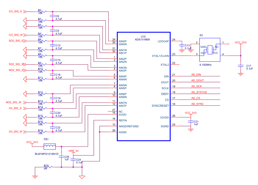 在我们所有采集的8个通道中,只有这第五个通道数据误差较大,其他通道数据正常?这个是否跟硬件输入阻抗有关?电路输入端其实差别不大,都是运放出来直接经过ADC前的电阻电容就直接进ADC了,如果有影响那也只可能是PCB板的layout影响输入阻抗,到现在为止,我们怀疑软件问题可能性较大?请问您这边能根据这些情况,给出指导吗?或者还需要什么信息。