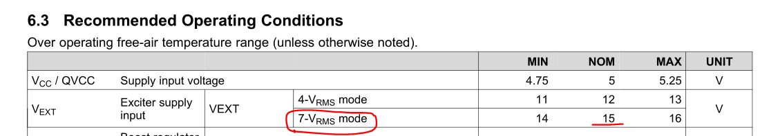 PGA411内部BOOST设置输出VEXT=12V,如果将EXTMODE设置为7-V RMS mode,规格书page6 推荐的VEXT电压值在14-16V之间,请问VEXT=12V时EXTMODE能不能设置为7-V RMS mode?