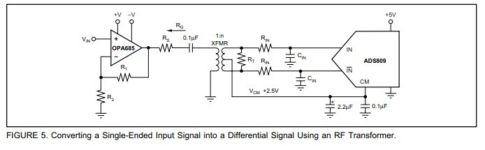 1、图一采用变压器使得单端输入转化成差分输入,但差分输入的电压范围差值为1vpp到2vpp,如何才能够得到我想要的采样范围0-5vpp。