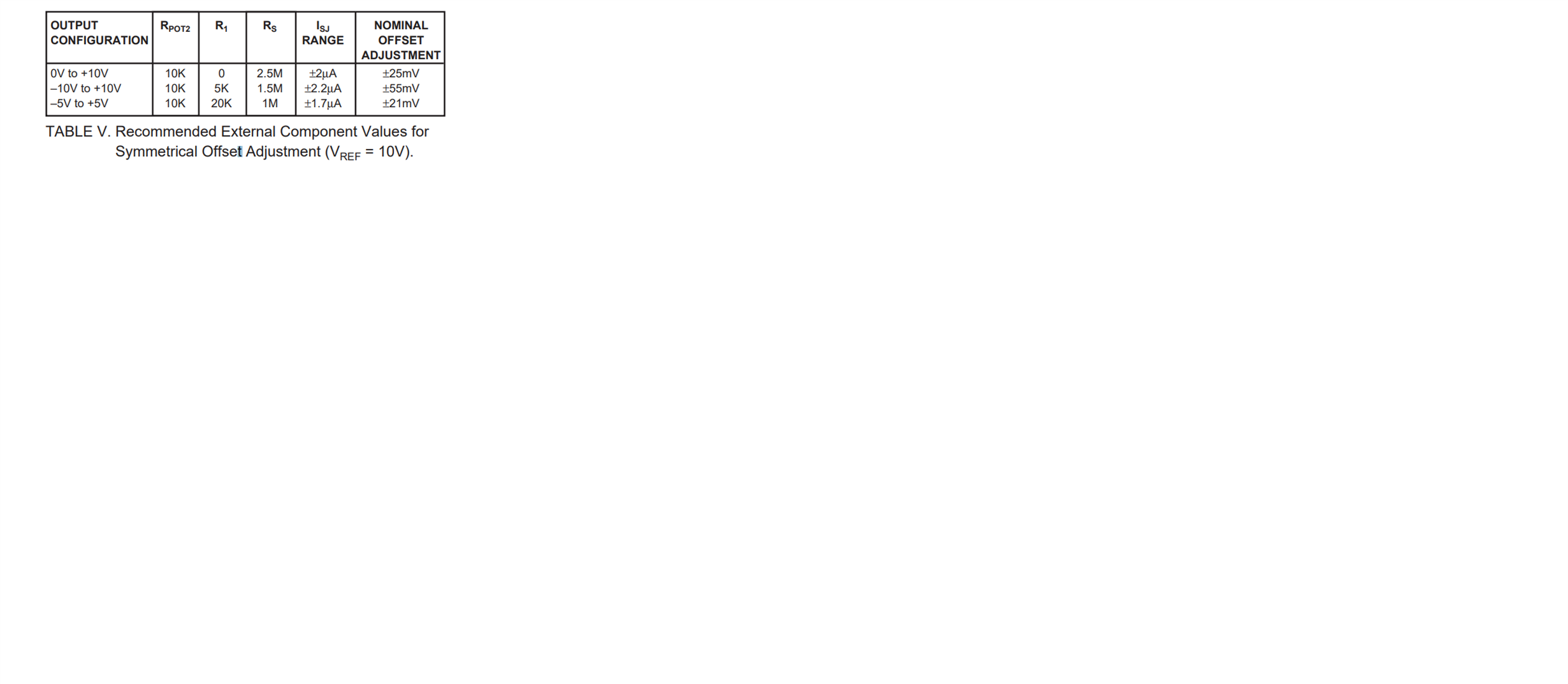 同样,如果使用外部参考的话,uipolar mode下需要0~10V的输出,那么Vref需要等于10V,同样strap pin Roffset和RFB1, RFB2的引脚连接参考的是external refernce表格,那么Vref=10V的前提下,RPOT2和Rs,R1的阻值大小需要参考的是Table V。
